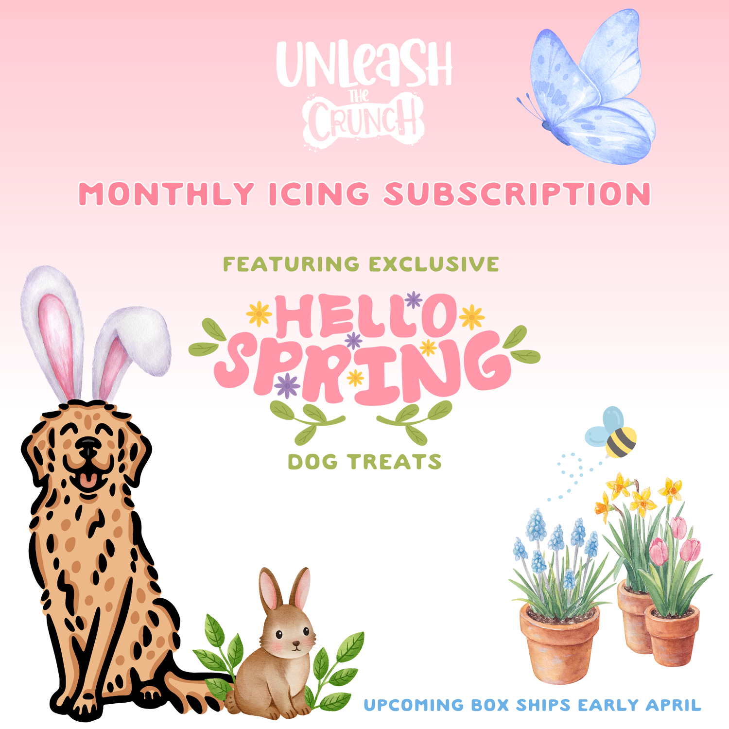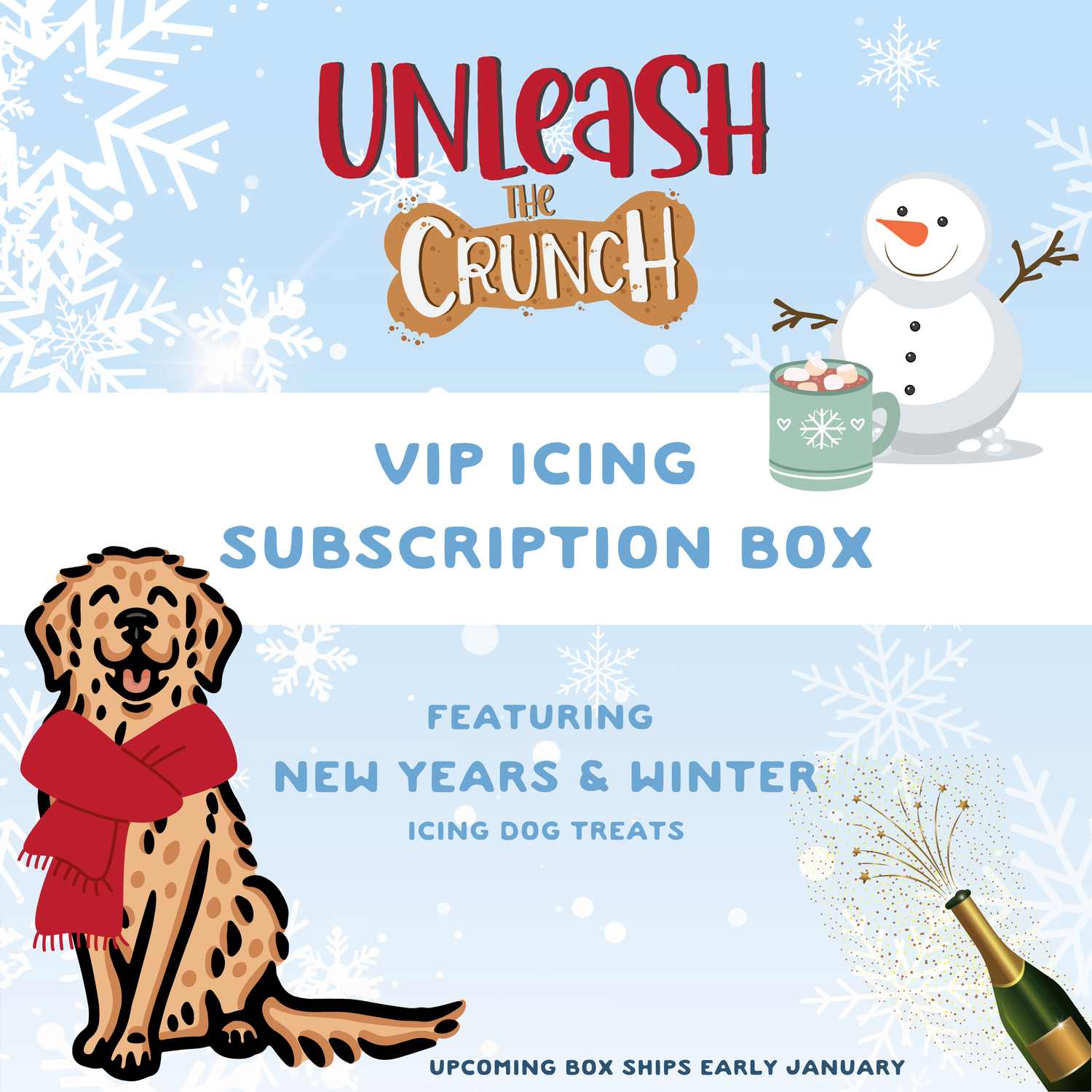 Receive exclusive access to our icing treats! Monthly boxes will be shipped directly to your pup's front door with themed iced dog treats!